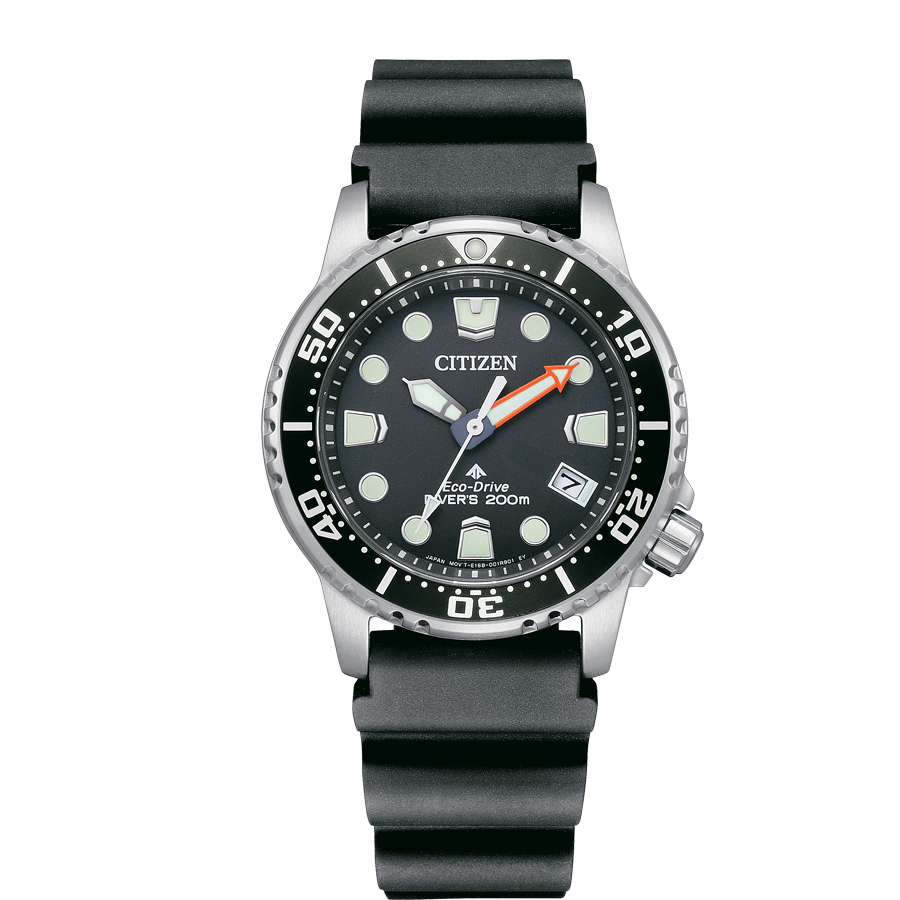 Caja de acero, 11,6mm. de espesor, con fondo y corona roscados. Correa de goma. Bisel giratorio unidireccional. Cristal mineral con tratamiento antirreflejos. Lumen en agujas, índices y bisel. Resistencia magnética 4.800 A/m. WR 20 bares.