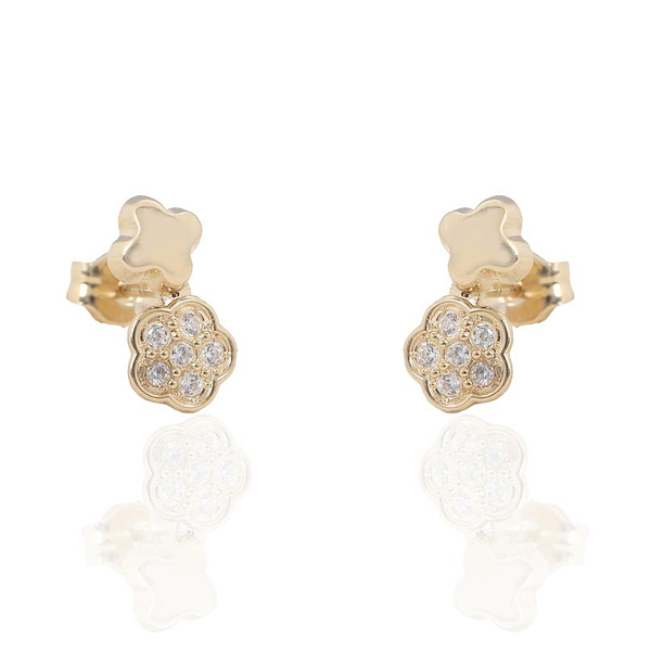 Yellow gold earrings 18 quilates y circonitas en forma de camelia y trebol