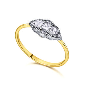 Anillo art decó rombo Oro amarillo y Diamantes